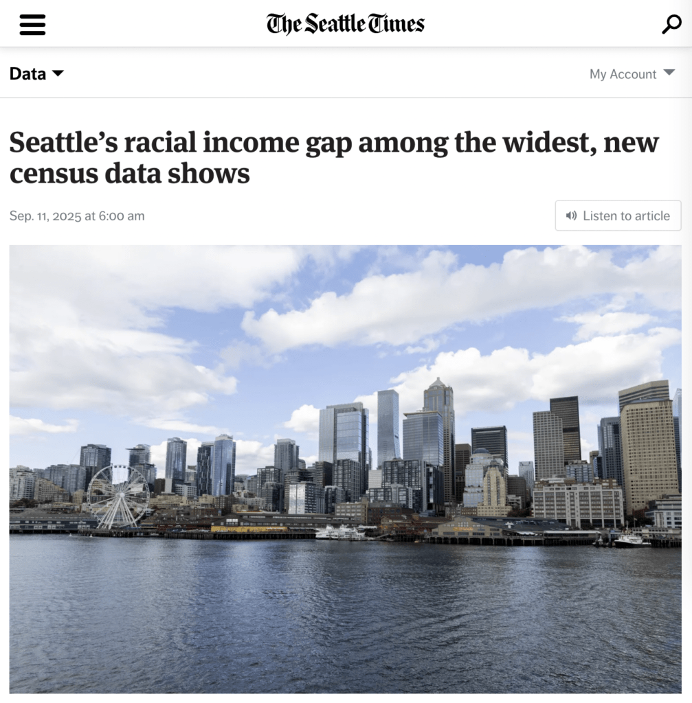 - Seattle’s racial income gap has grown to one of the widest in the nation with Black families earning less than 50% of white and Asian household incomes