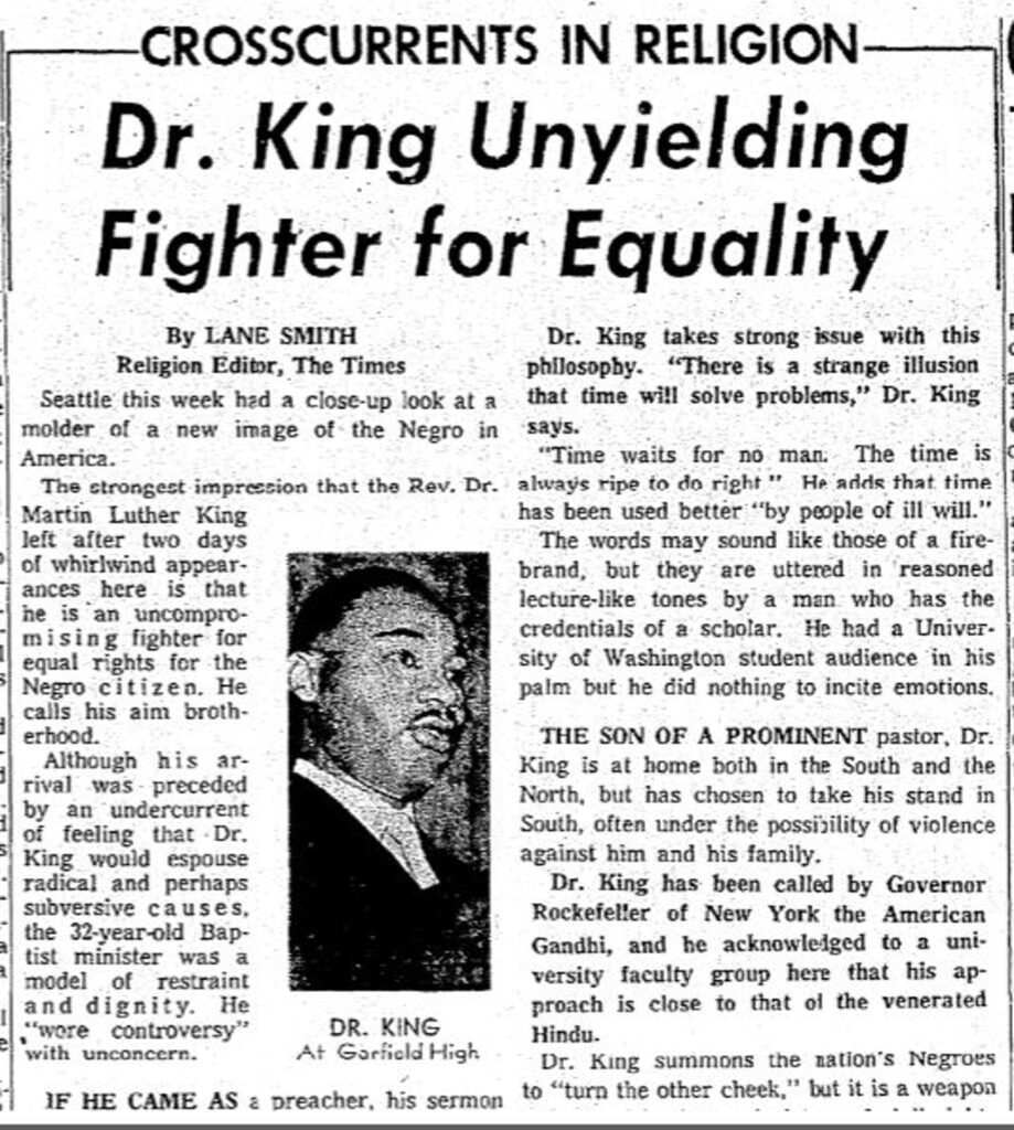 Dr. King in the Seattle Times. Rev McKinney and Dr. King, 1961.